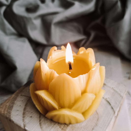 Handcrafted Beeswax Lotus Candle – A Symbol of Light & Renewal