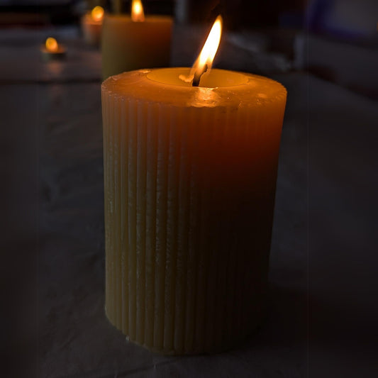 Fluted Beeswax Pillar Candle – Natural Elegance & Pure Ambiance